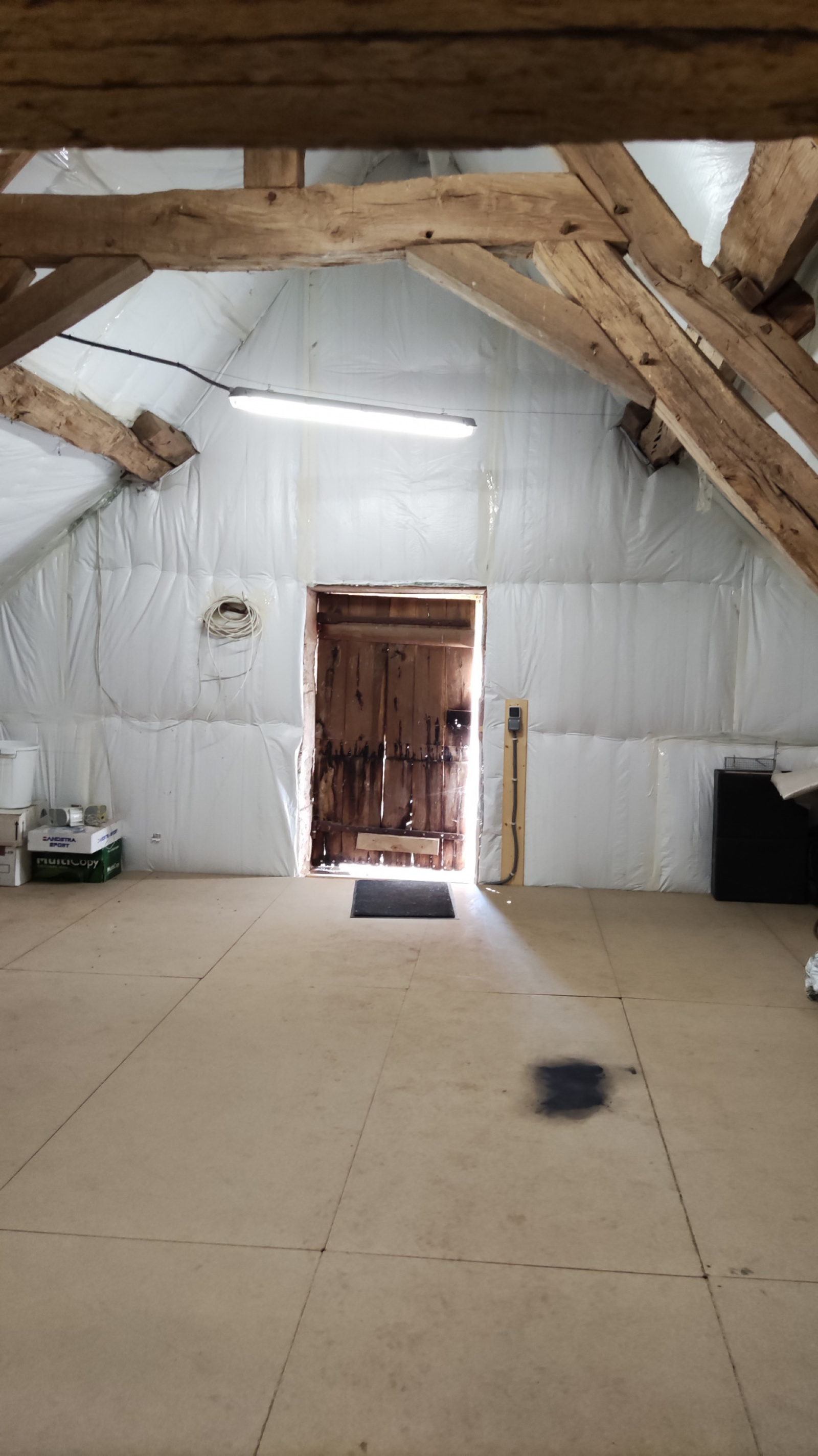 Dans la cour se trouve une troisième grande grange, qui sert de stockage et d'atelier.