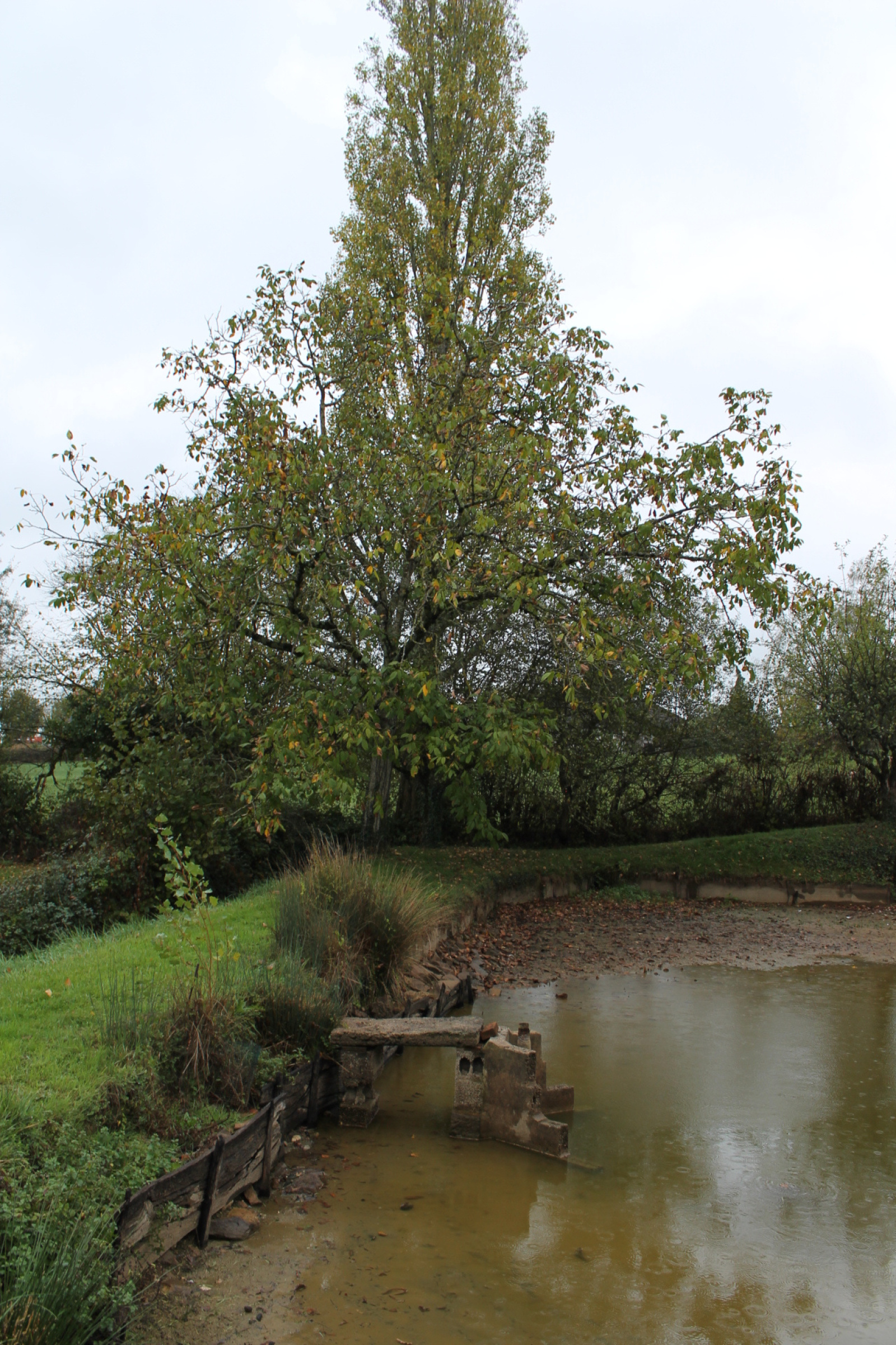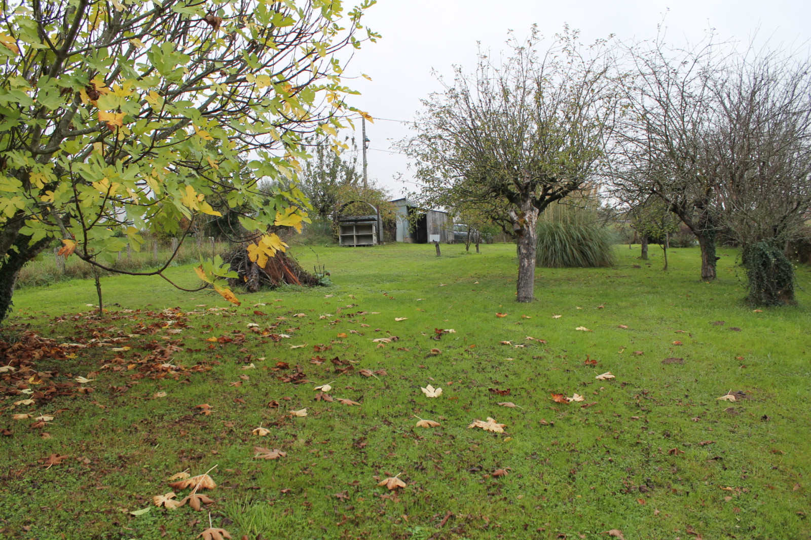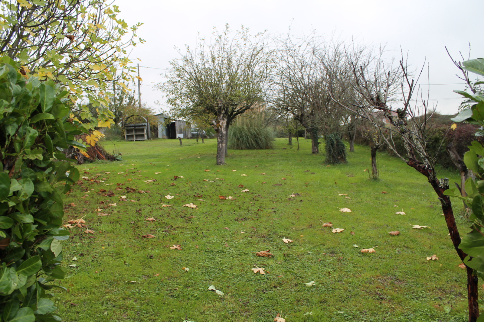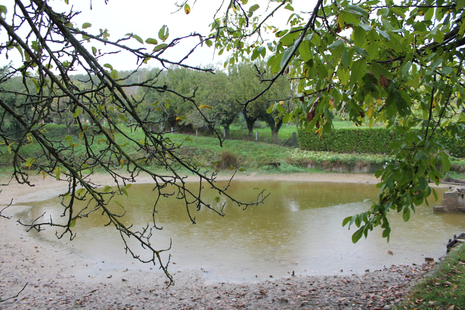 La petite route devant la maison mène à un deuxième garage et le grand jardin avec un poulailler, un potager et des arbres fruitiers. Au fond de ce jardin se trouve un petit étang de 500 m² entouré d'une variété d'arbres dont un grand noyer.