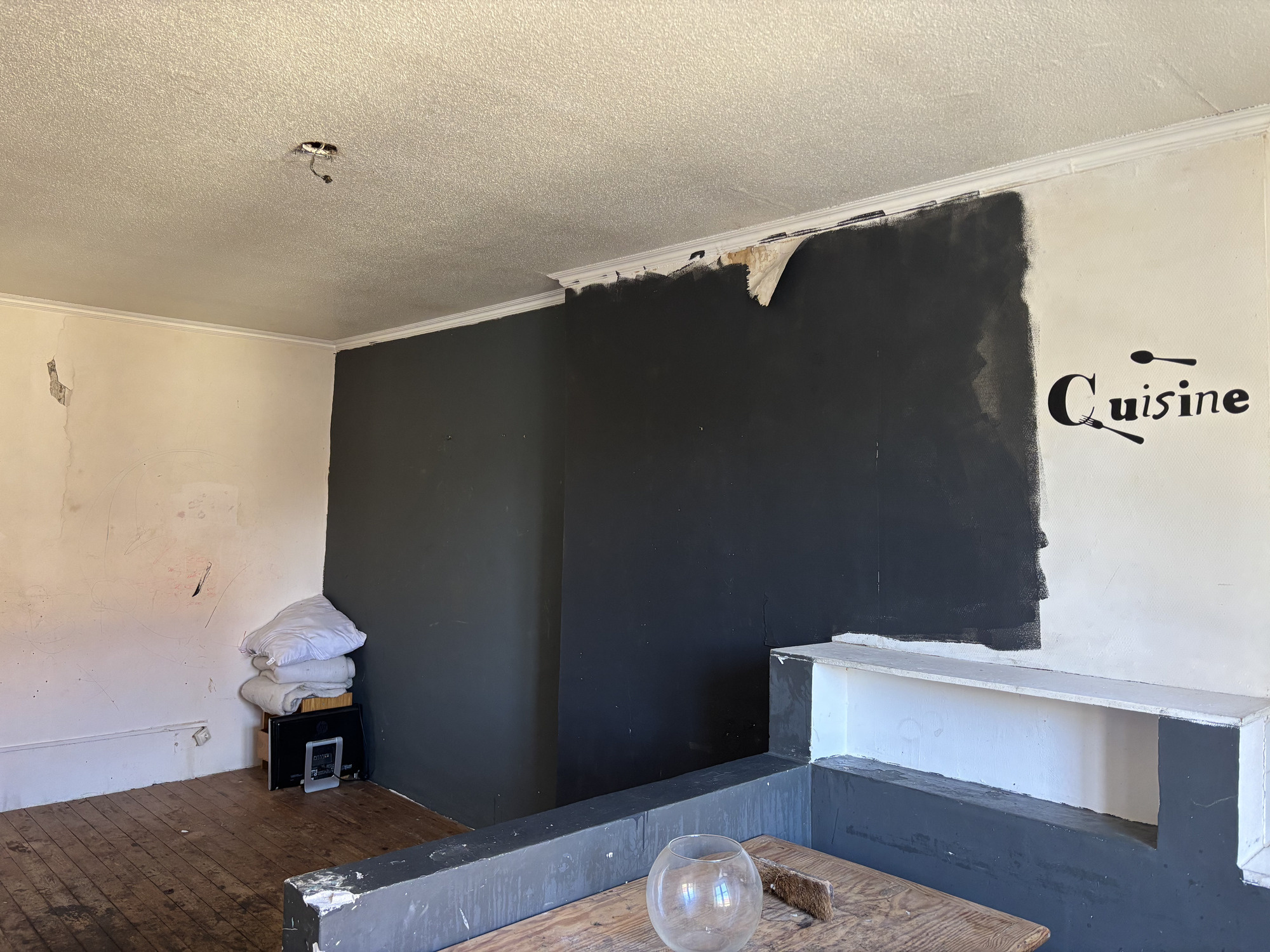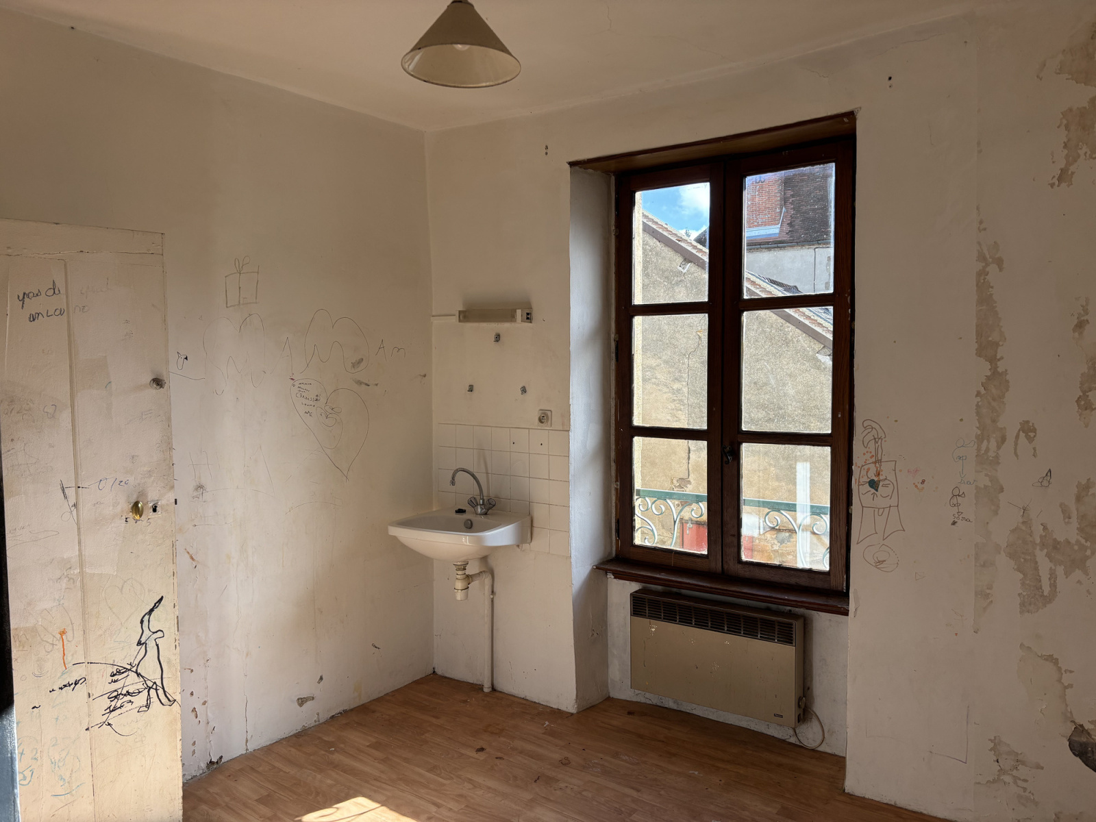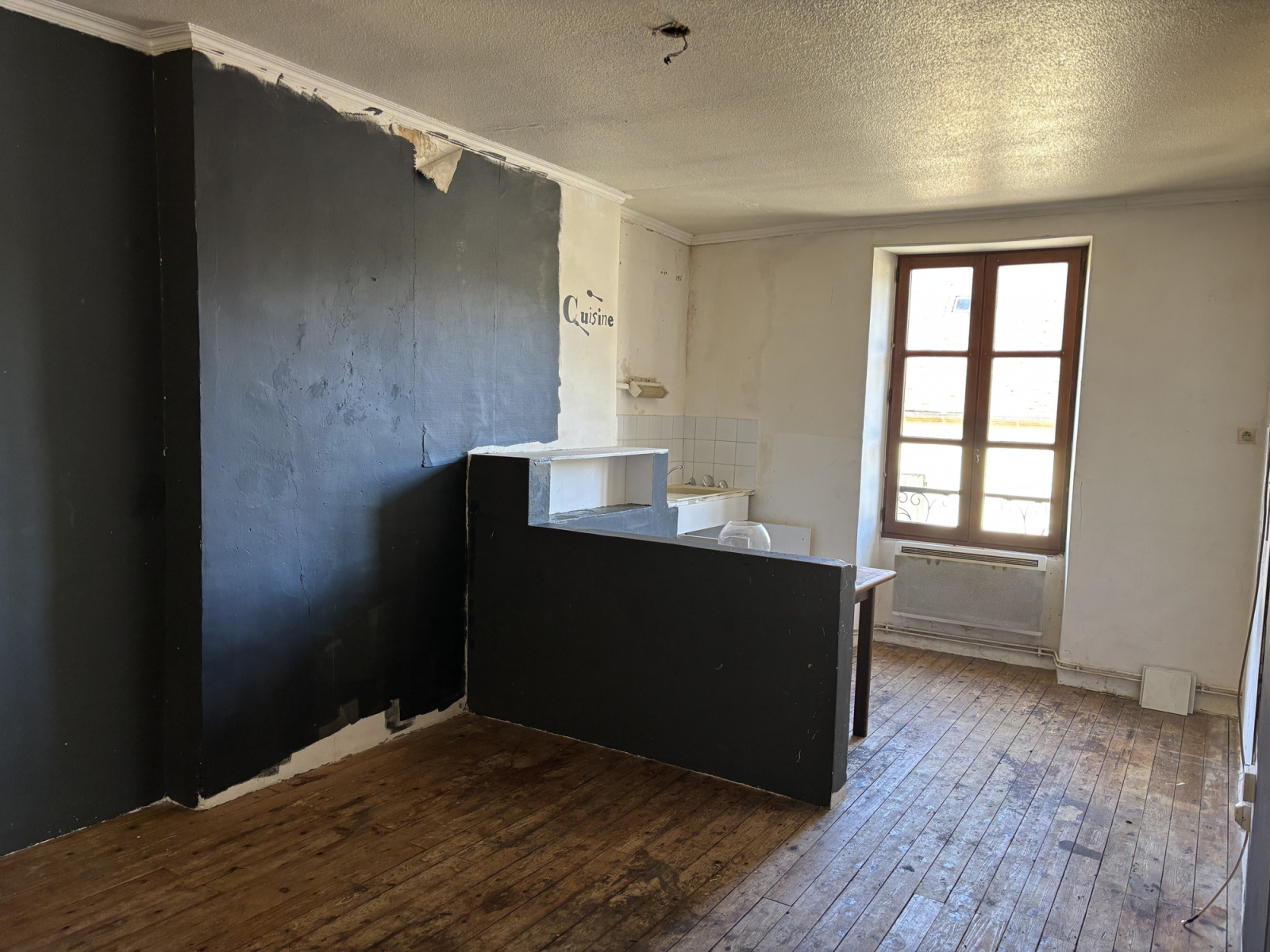 La propriété dispose de plusieurs entrées. Au rez-de-chaussée se trouve un vaste espace de restauration de 58 m² avec un bar. Une porte donne accès à la cour intérieure depuis cette pièce. Il y a également une cuisine, une arrière-cuisine, une pièce supplémentaire pouvant servir de deuxième entrée, des toilettes et une buanderie donnant également accès à la cour intérieure.