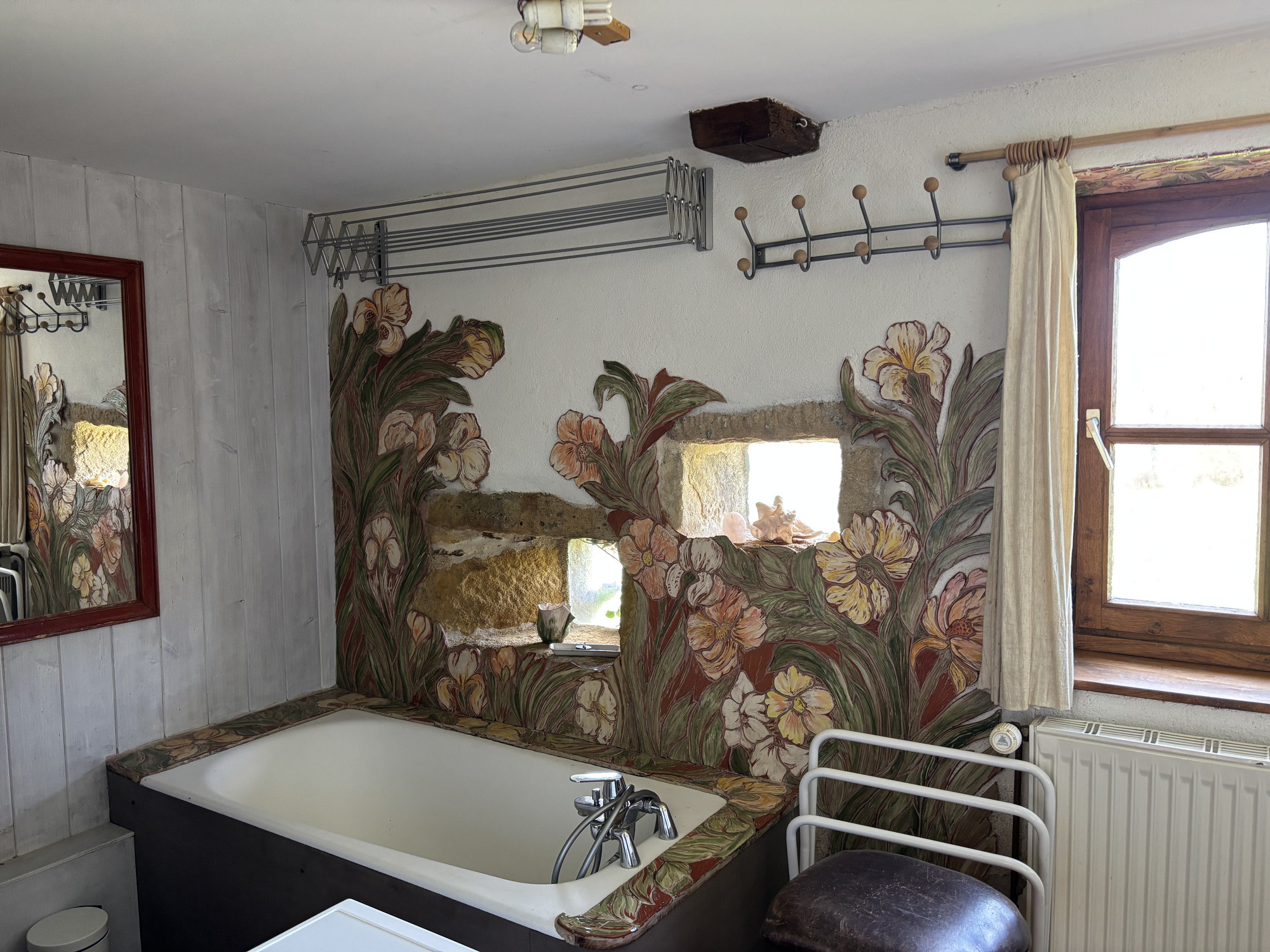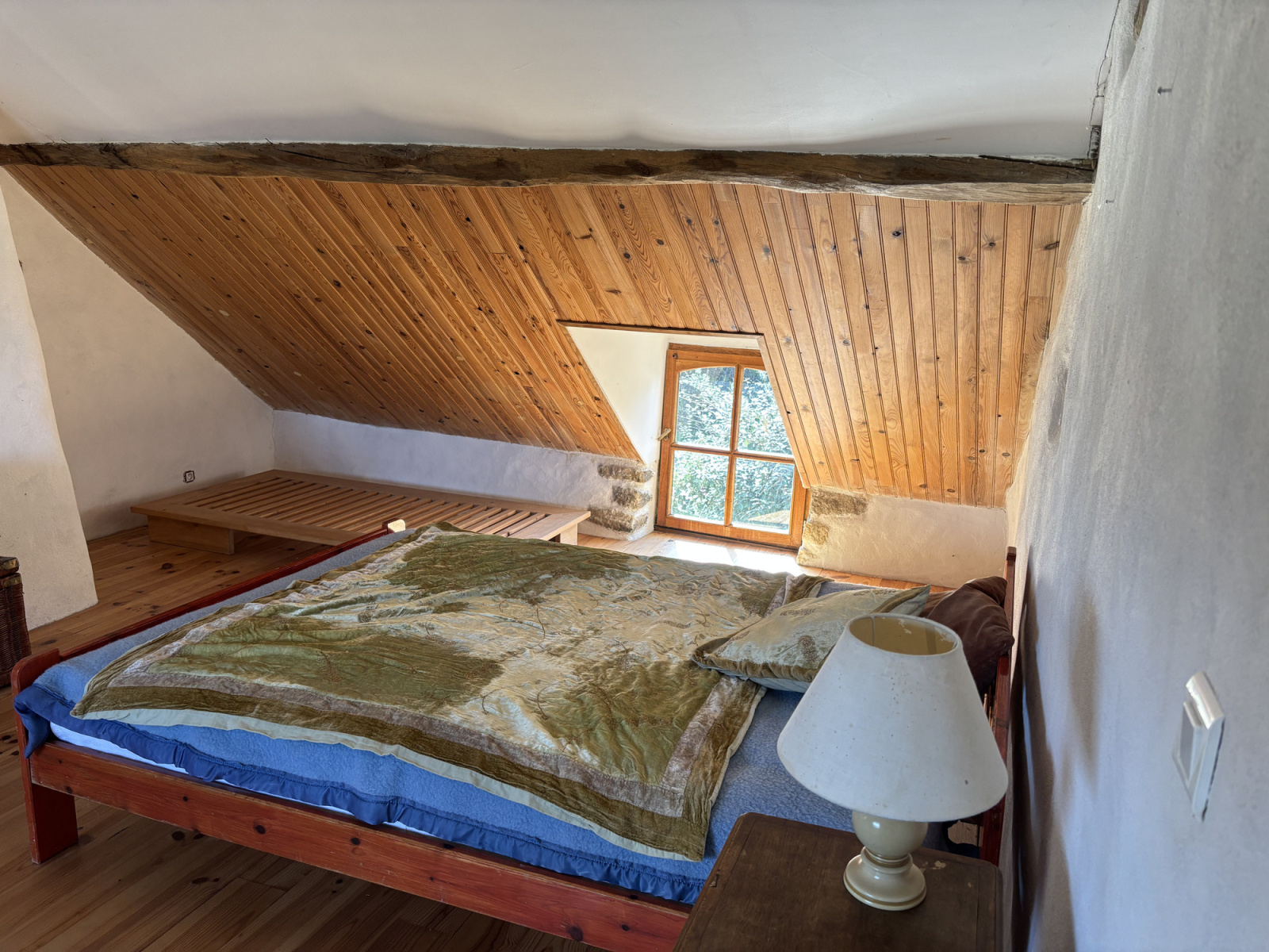 Presque toutes les pièces ont des fenêtres donnant sur l'arrière avec de belles vues sur les prairies, de sorte que la tranquillité de la campagne peut être ressentie dans la maison. Des détails authentiques ont été conservés dans toute la maison, comme les encadrements en pierre naturelle autour des portes et des fenêtres et les anciens fours à pain. La maison est équipée de double vitrage et est chauffée par un poêle à bois ou par un chauffage central au bois.