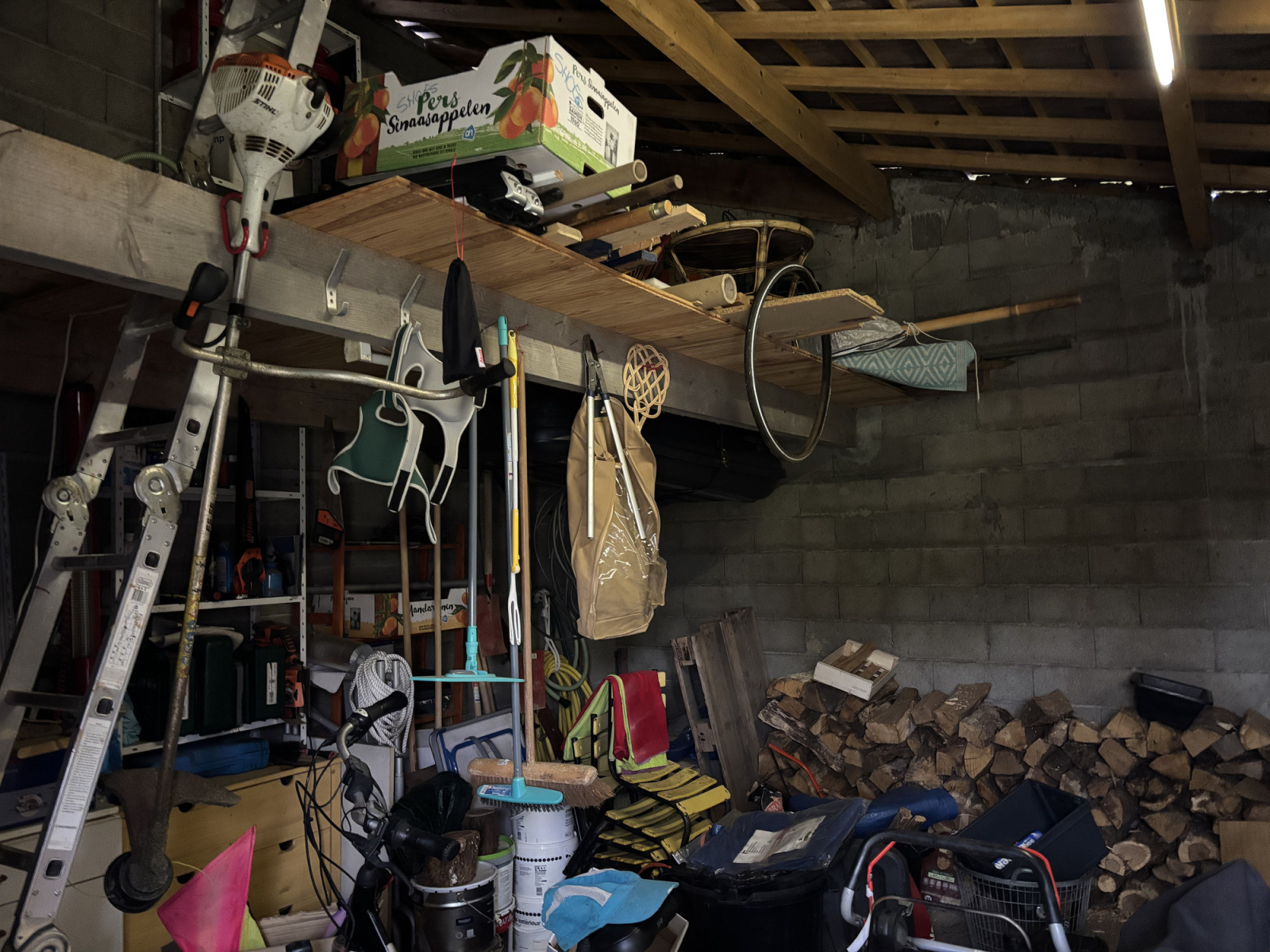 La surface habitable totale de la maison est d'environ 115 m². La maison dispose d'un toit en bon état, les fenêtres sont en partie équipées de simple vitrage et en partie de double vitrage. Il y a un garage d'environ 27 m² qui sert actuellement à stocker du matériel de jardinage et du bois, et dans le jardin à l'avant se trouve un puits. L'ensemble est situé sur un terrain de 8268 m².