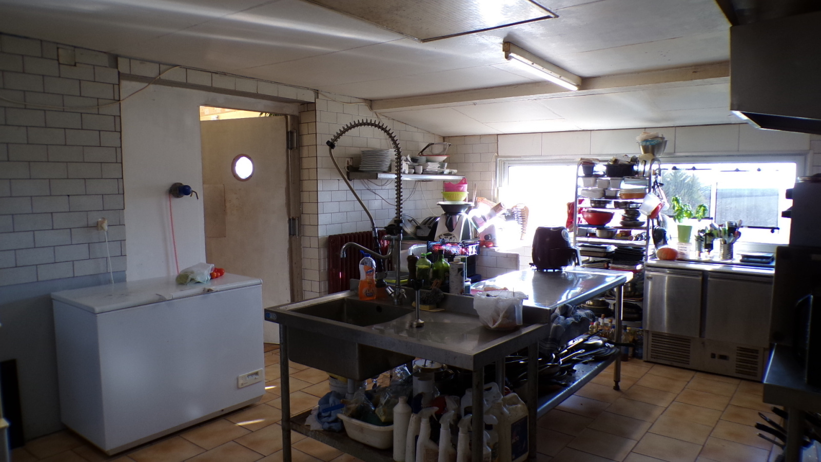 Depuis la salle à manger, vous accédez au restaurant qui est actuellement utilisé pour les petits-déjeuners des clients. Il pourra être ouvert au grand public si vous le souhaitez. Les fenêtres offrent une vue imprenable sur la vallée de la Sioule et le Massif Central situé derrière la maison. Une porte mène à la terrasse extérieure, et une autre à la cuisine, qui bénéficie également d’une vue sur la campagne. La cuisine est fonctionnelle et offre un espace de travail agréable. Elle dispose d’une porte menant à l’extérieur et d’une autre vers un couloir de la partie privée.