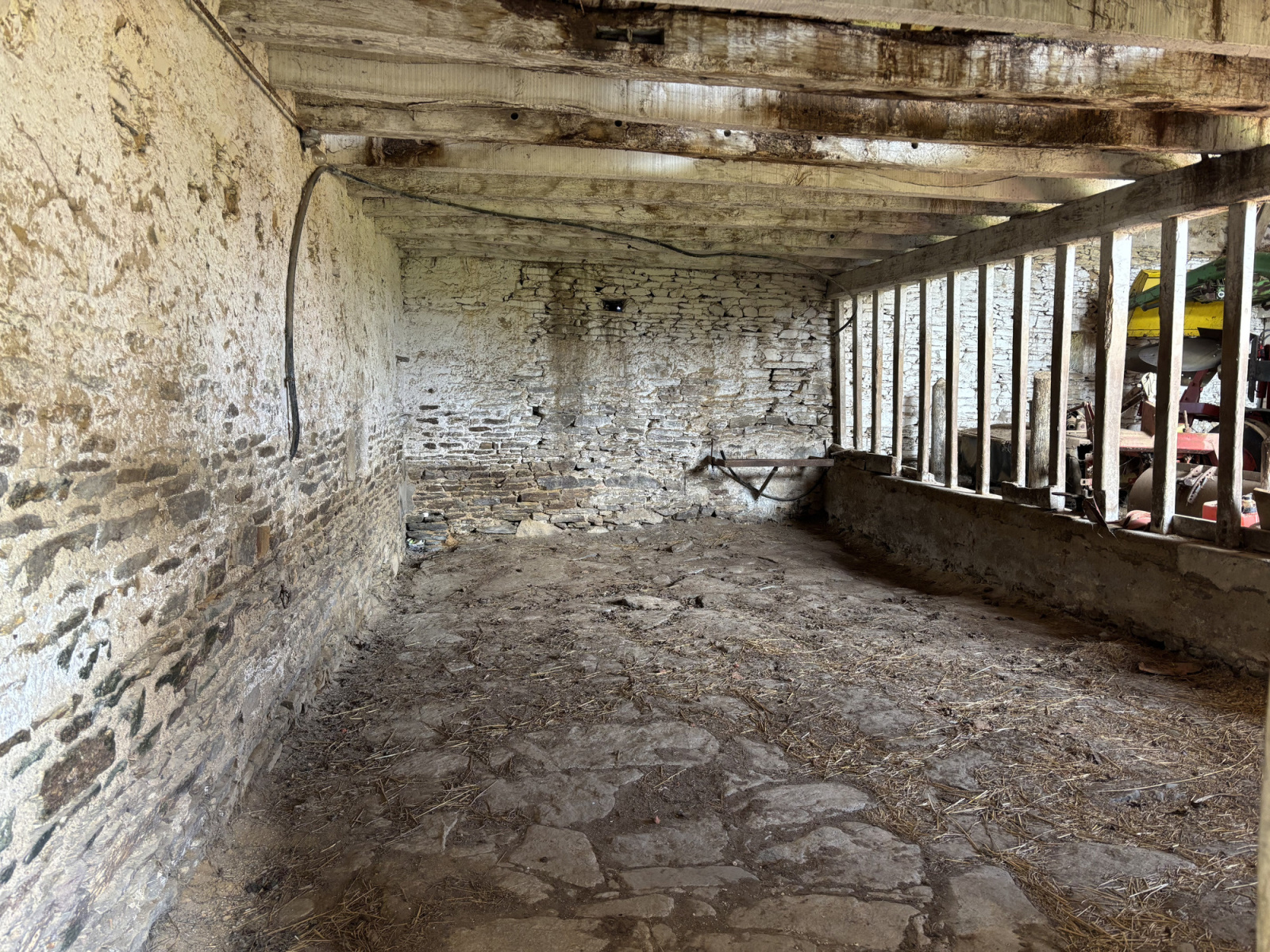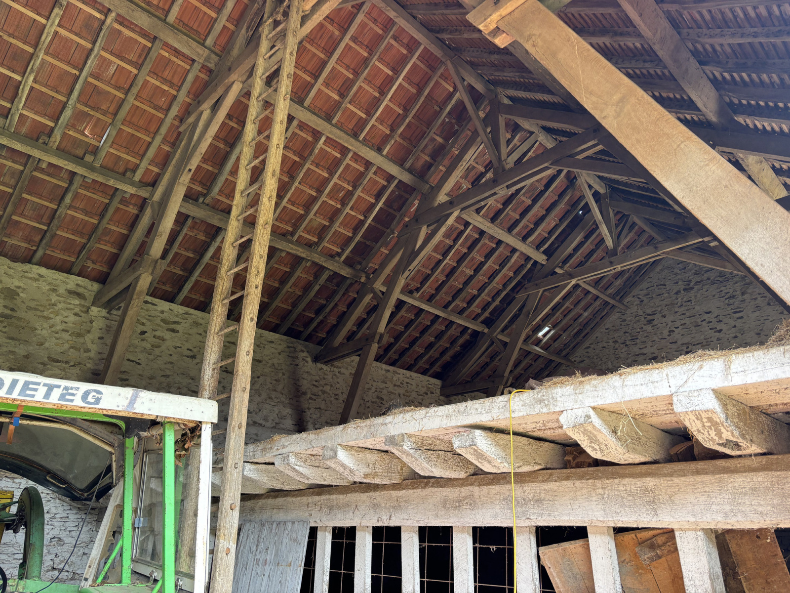 De là, on accède à une cour ouverte menant à un grand bâtiment d'élevage, divisé en plusieurs parties. Sur la gauche se trouve une écurie avec un champs pour les ânes. À côté, une grange abrite le tracteur et une autre grange sert d'entrepôt. À droite du bâtiment se trouve une partie partiellement rénovée, avec un sol en béton.