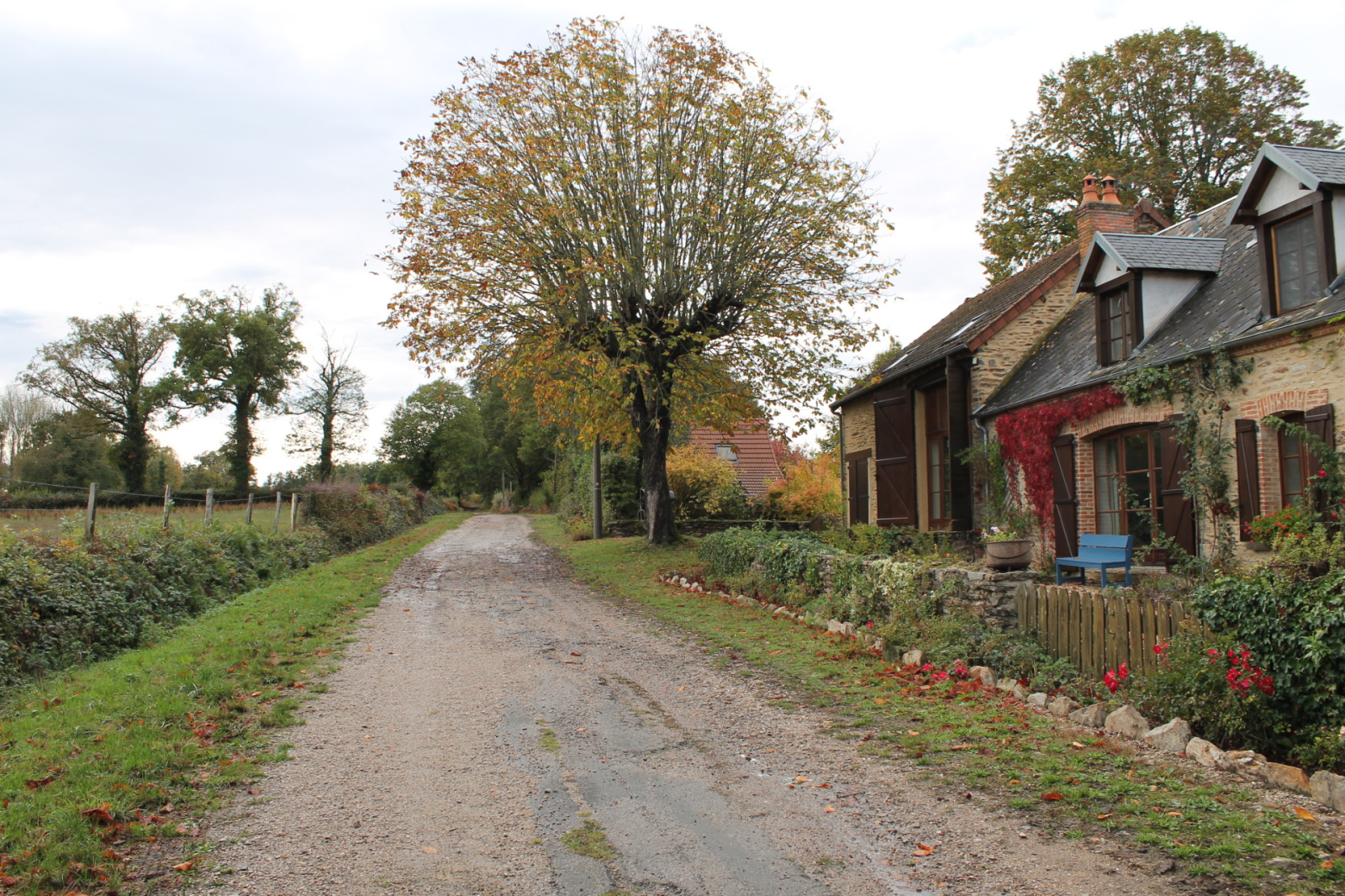 La maison est complètement indépendant sur un chemin de terre, donc il n'y a pas de trafic autre que des tracteurs pour allez dans les champs. Les vues à l’avant et l’arrière de la fermette sont dégagées.