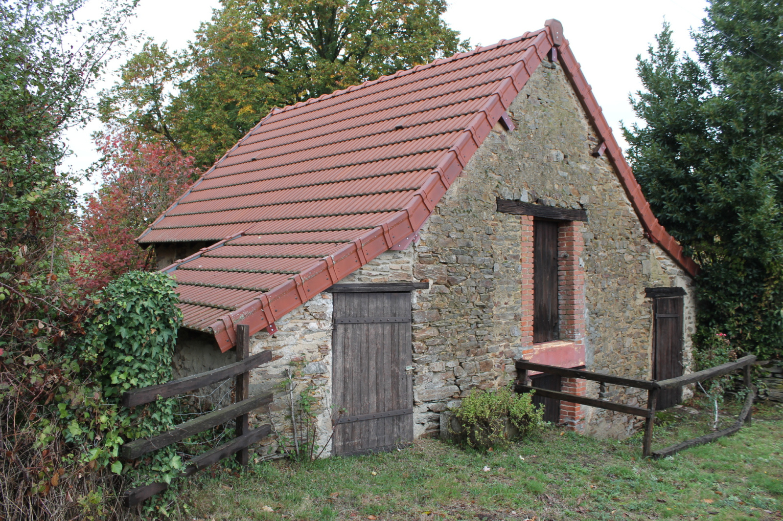 À l'extérieur, la terrasse située derrière la maison offre une vue magnifique sur la campagne vallonnée. Dans le jardin entourant la maison se trouvent plusieurs arbres fruitiers, un hangar métallique pour le bois de la cheminée et une dépendance avec un nouveau toit qui pourrait être aménagé en chambre d'hôtes ou pour des enfants.