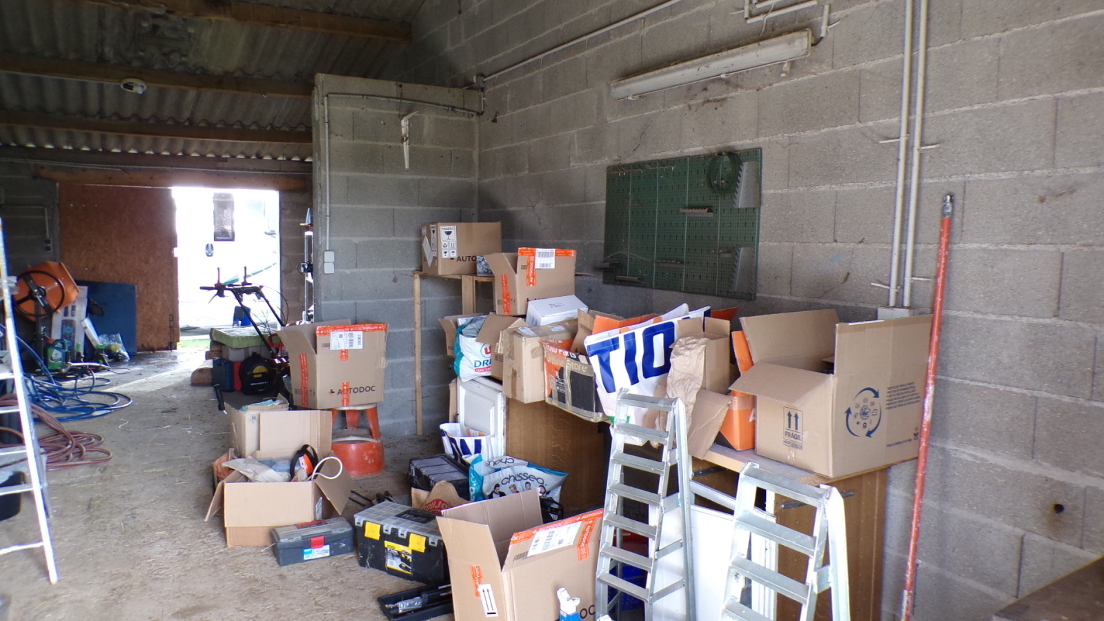 Au centre du terrain, une grande dépendance d’environ 400 m² abrite un garage traversant ainsi que plusieurs box de chaque côté. Elle est équipée en eau et électricité, parfaite pour les propriétaires d’animaux !