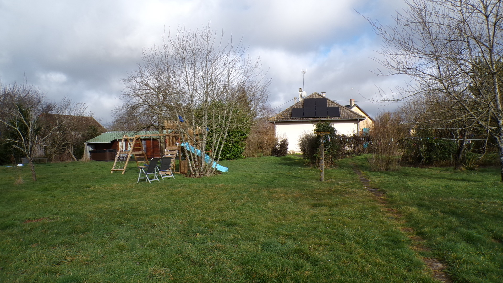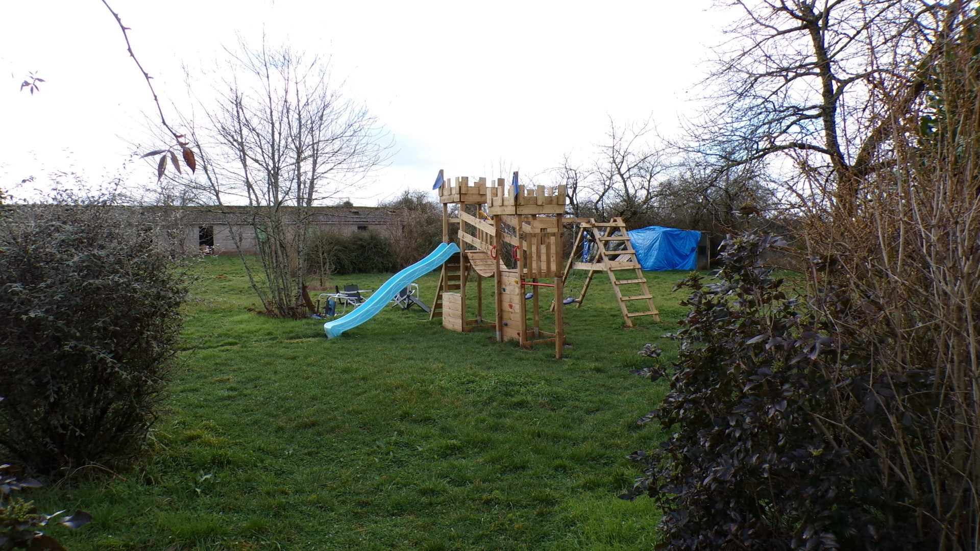 Derrière cette dépendance, un second terrain où de nombreux arbres forestiers et fruitiers ont été plantés en décembre 2024.